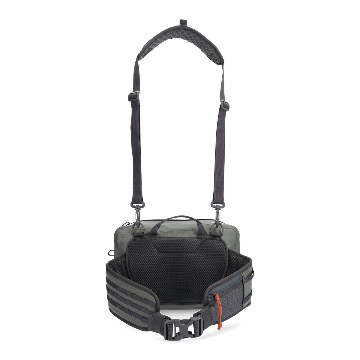 - Removable shoulder strap with D-ring for net attachment and a removable waist strap for versatile carry options